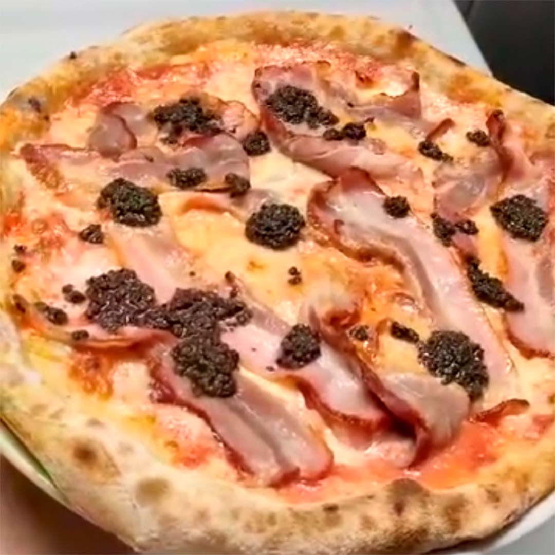 Tomate, mozzarella, lardons, truffe noire.
